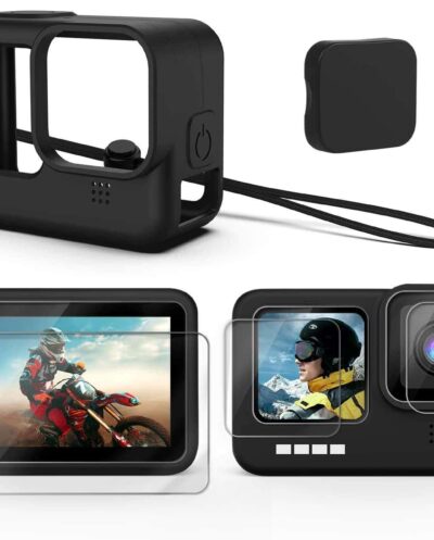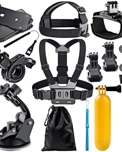 - Kit Includes: 1 x Wrist band, 1 x Head Strap Mount, 1 x Pouch, 1 x Bicycle(Bike) Mount, 1 x Chest Strap Mount, 1 x Extendable Handle Monopod, 1 x 360 degree rotation backpack clip, 2 x J-hook Buckle, 1 x Tripod Adapter, 1 x Car Suction Cup Mount Holder, 1 x Tool, 1 x Floating Handle Grip, 1 x Mini Tripod & 12 x Antifog Inserts With Silica.