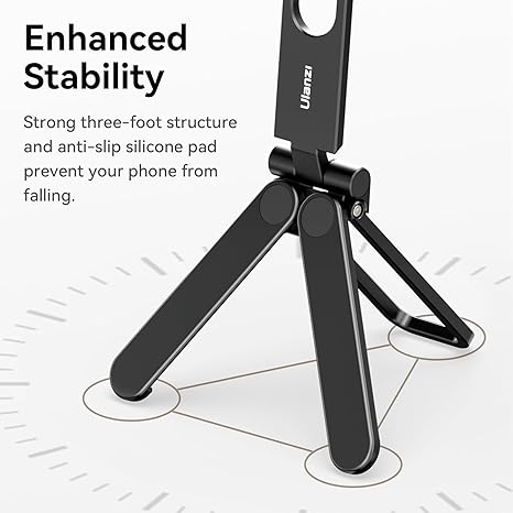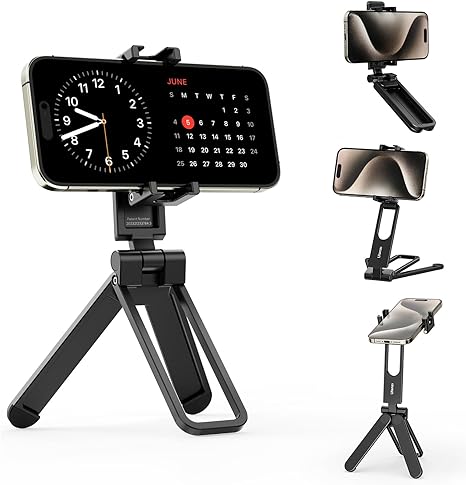 This is the highest quality and compact mobile phone stand we could find! Easily adjustable for versatile angles, this tripod seamlessly switches between vertical and horizontal modes. Its stable three-foot structure and anti-slip silicone pad keep your phone secure, while dual cold shoe mounts allow creative light or microphone attachments.