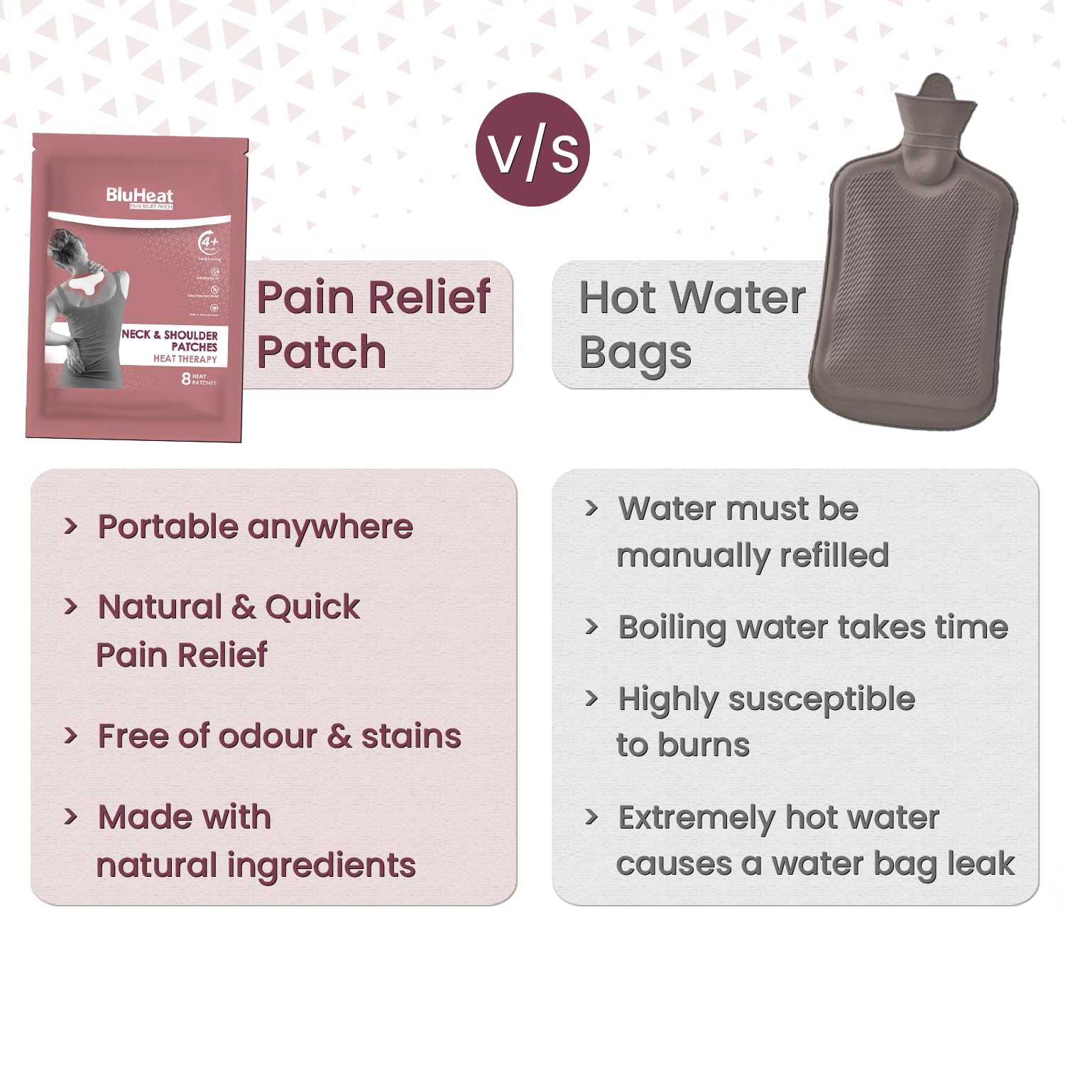 - Safe and Natural Relief: BluHeat Neck & Shoulder Pain Relief Patches offer natural pain relief by activating heat upon application, swiftly alleviating neck and shoulder discomfort.