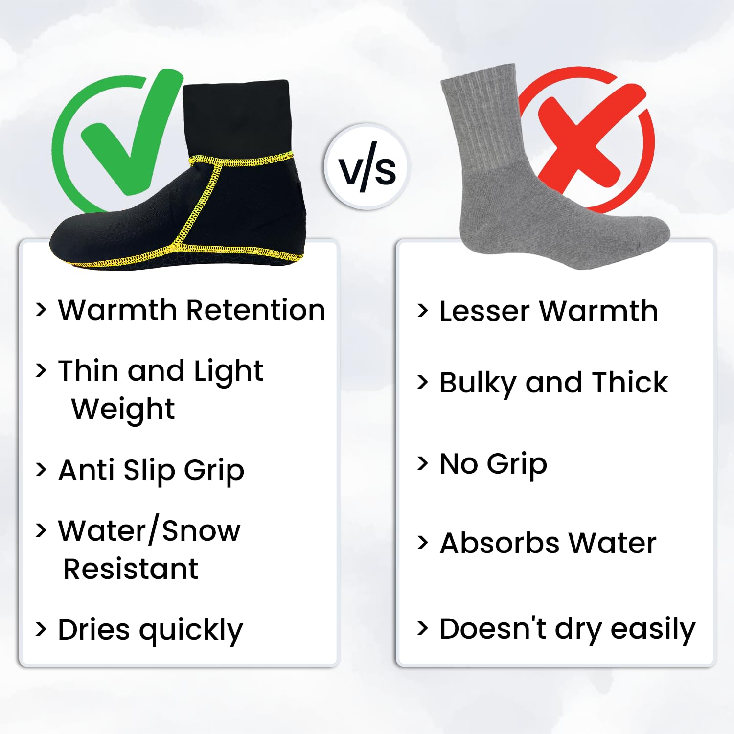 Warmee Snocks are made with a specially engineered material to keep your feet warm and protected, no matter how harsh the winter. Designed to withstand snow, wind, and cold, these socks provide unmatched insulation and retain body heat, making them the ultimate choice for reliable comfort in freezing temperatures. Equipped with anti-slip sole grips, Warmee Snocks can be worn safely at home as cozy indoor socks too. Plus, they are fully washable and reusable, giving you long-lasting warmth and value. Mention your shoe size in order notes for the equivalent size of the snocks