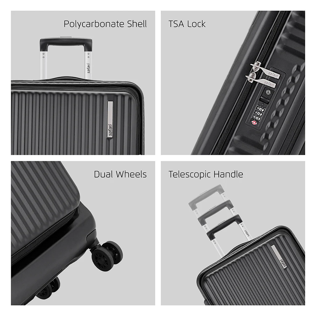 The latest design from Safari Select series, this is a business class suitcase that blends style and functionality. This collection features dual wheels for smooth maneuverability and a TSA lock for enhanced security. With an innovative expander feature, space no longer becomes an issue; easily adjust capacity as needed. Size List: 77cm (Full sized suitable for international travel). 67cm (Mid sized suitable for international travel) Available in Silver & Black Colour