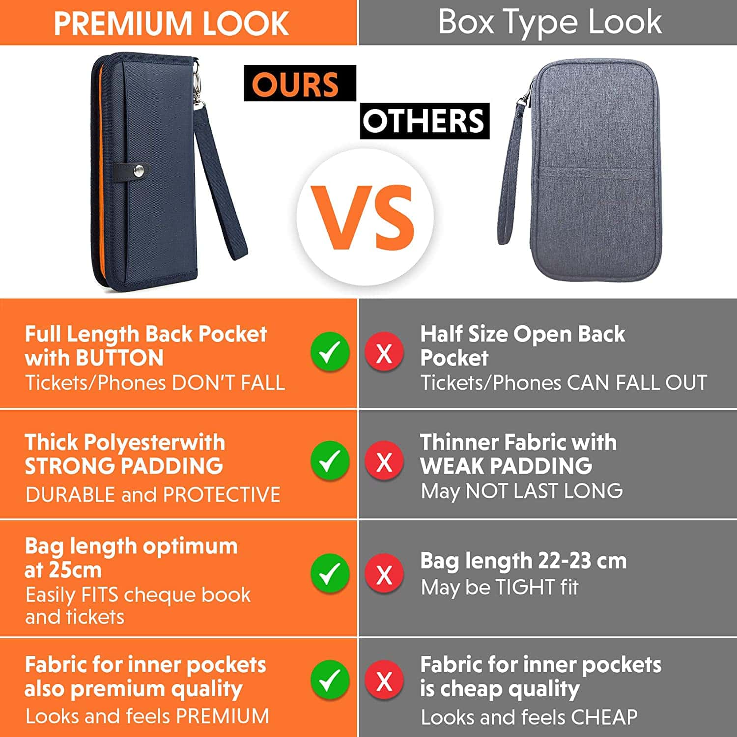 - ACCESS YOUR BOARDING PASS EASILY WITH AN OPEN YET SECURE BACK POCKET : It has 1 back pocket with a button to keep boarding passes secure yet easily accessible.