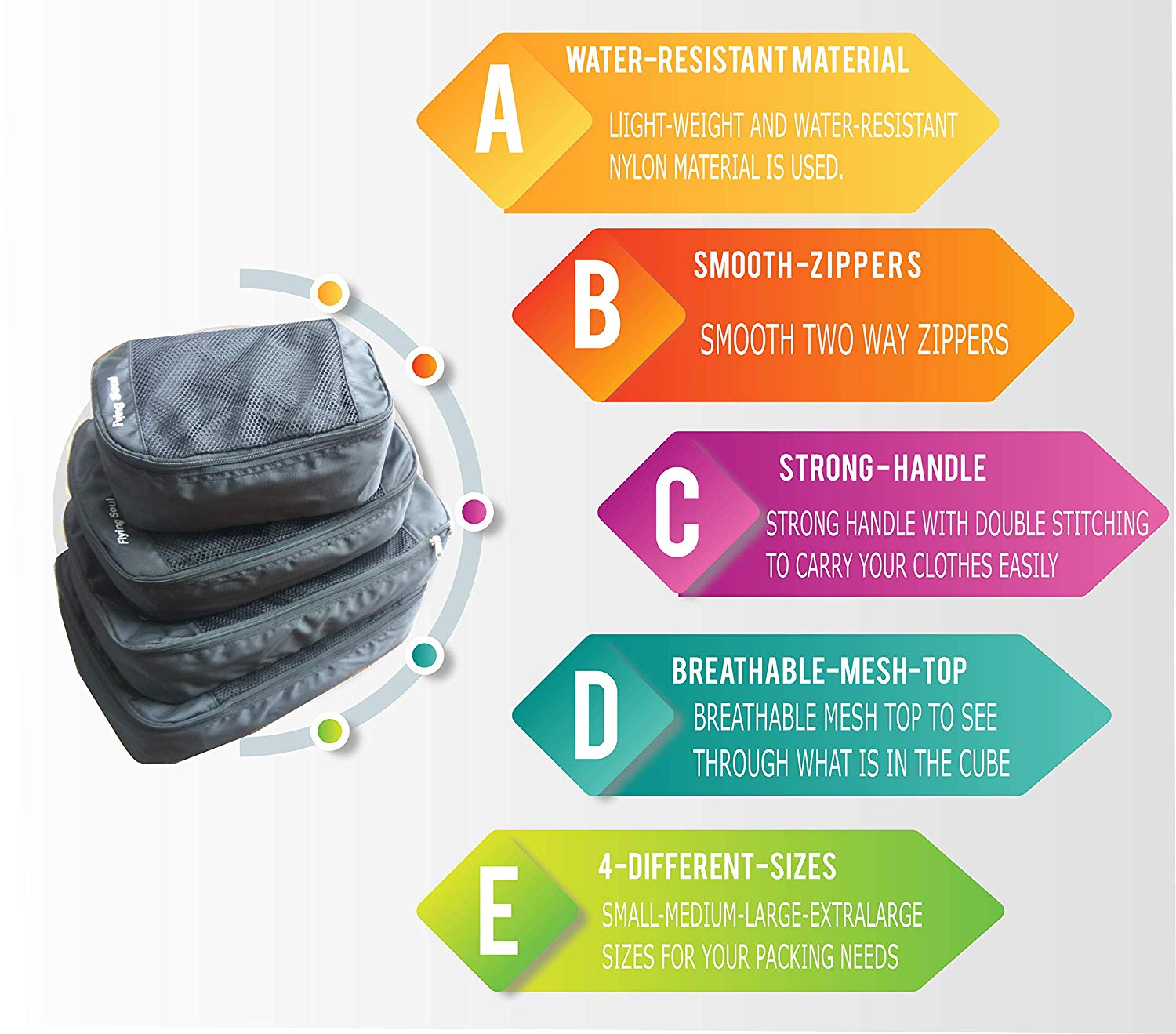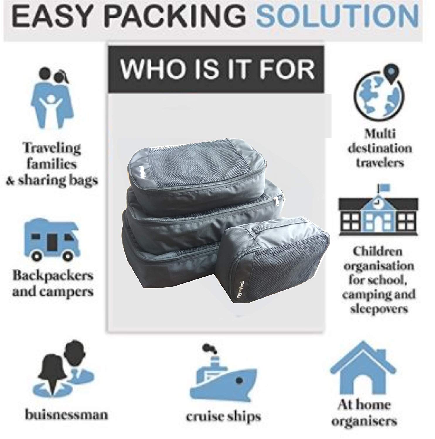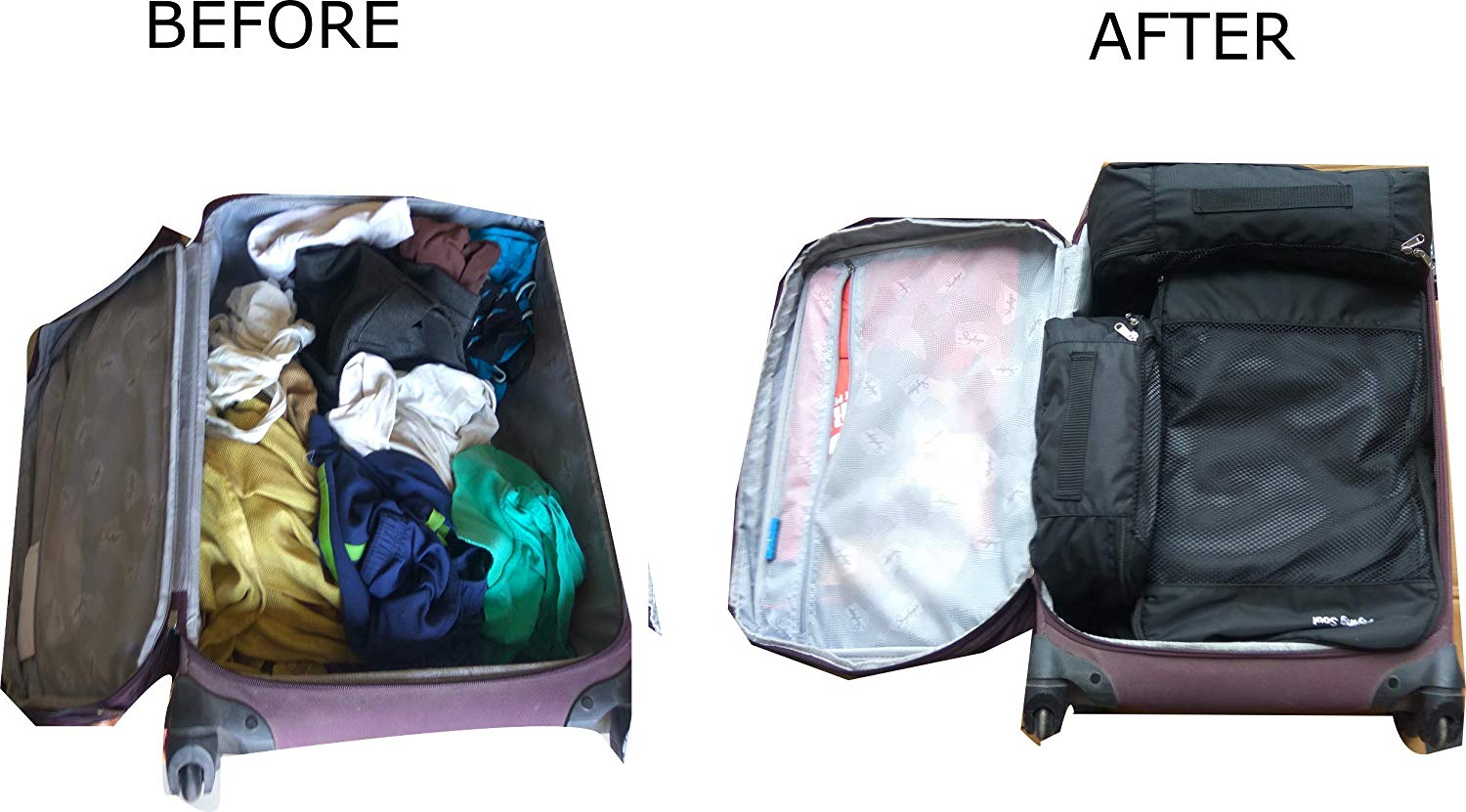 - ARRIVE ORGANIZED – Items won’t shift in transit, leaving you with less wrinkled clothing and more time to relax while traveling. Create a personalized packing system with all 4 squares to simplify work trips, weekend getaways, and long-awaited vacations!