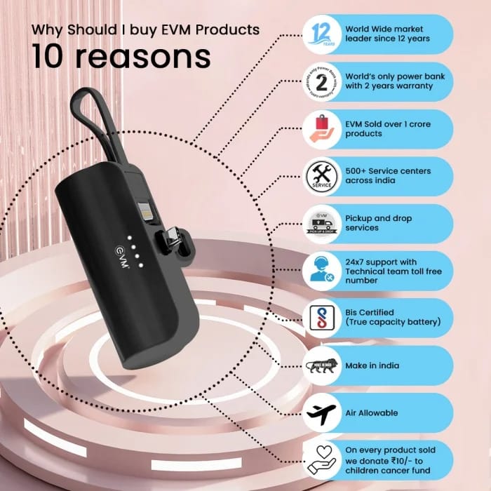 The most compact power bank in the market, that can fit in any purse or pocket. This ensures that you always have back up juice to charge your devises in a pinch. Ideal for travel and commutes.
