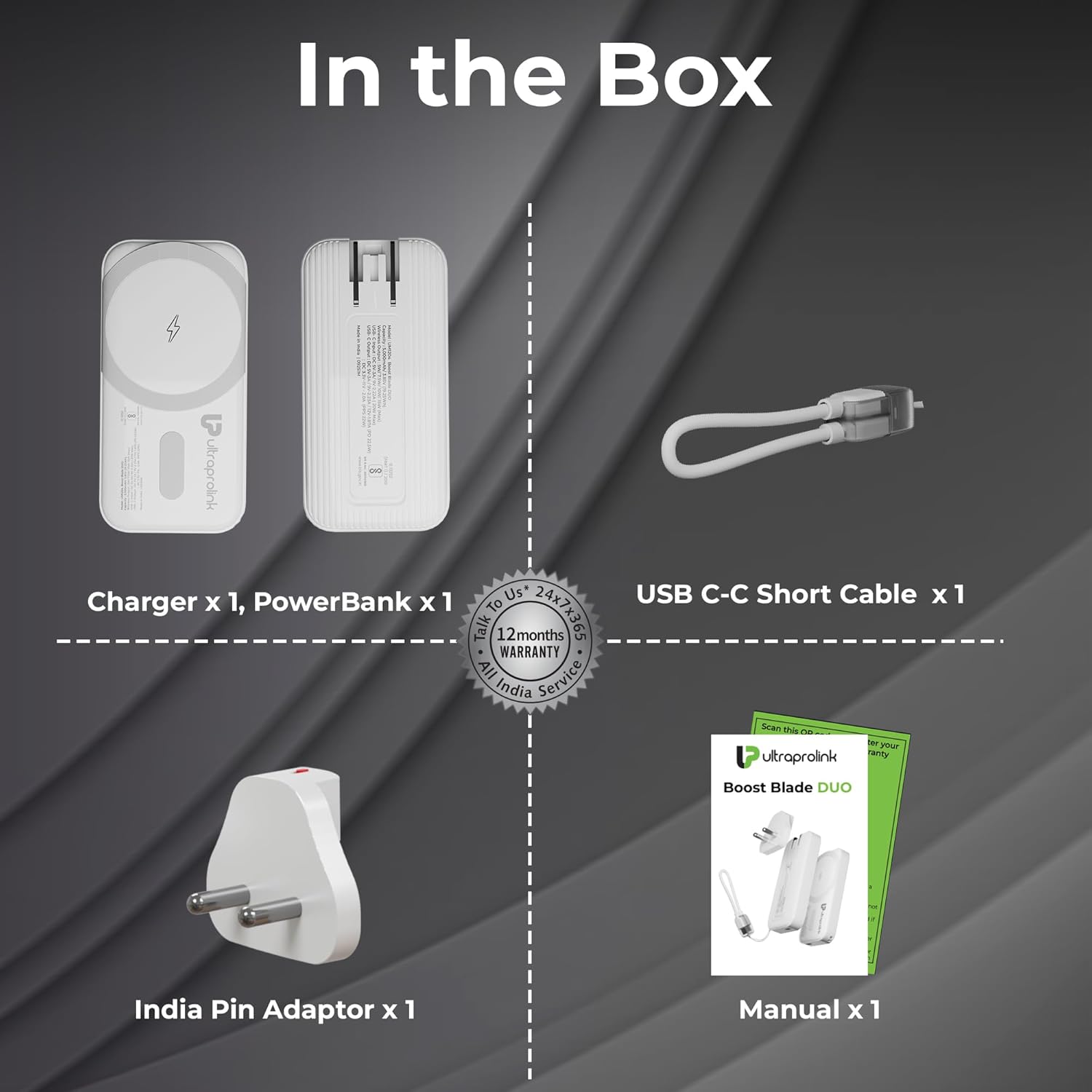 - Power Rating : 67W Charger + 5000mAh-15W Magnetic Wireless Power Bank & 22.5W Fast Wired Charging