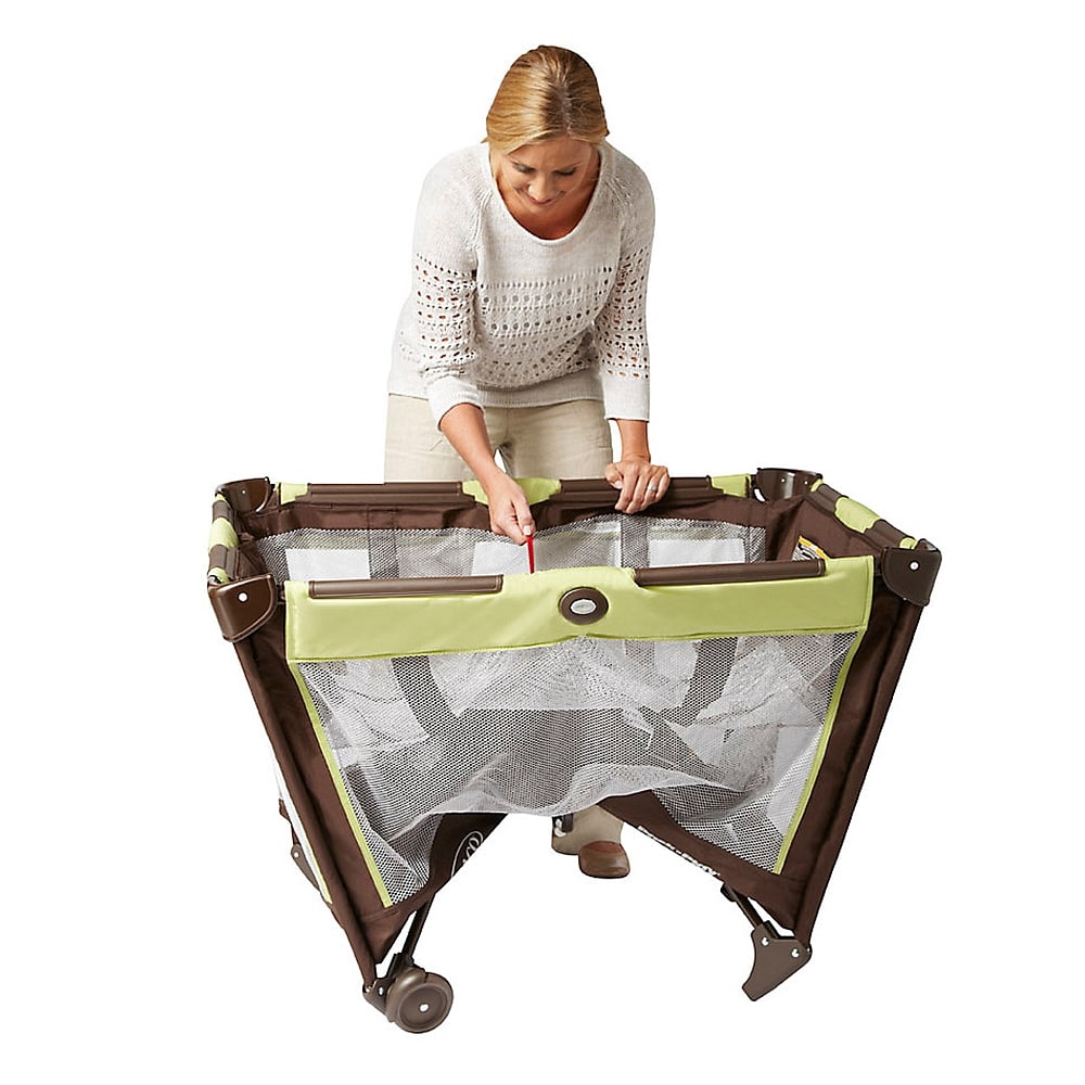 - Signature Graco push button fold makes closing your play yard quick and hassle free.