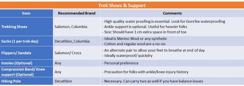 From a gear perspective, while most of the essentials remain the same anytime of the year, but many trek accessories change completely compared to a snow trek. Fundamentally, instead of layering up to bulwark against the cold weather during a winter trek, we need to cover up to protect the skin from the sun and harmful UV rays and manage our sweat more effectively.