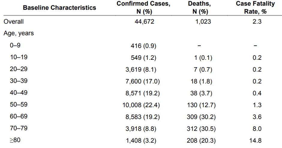 Case fatality rates in mainland China as of February 11, 2020. China CDC/ Vox.com